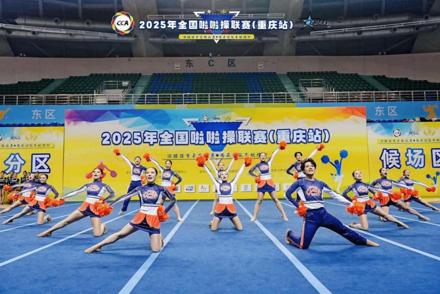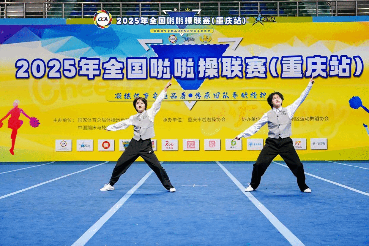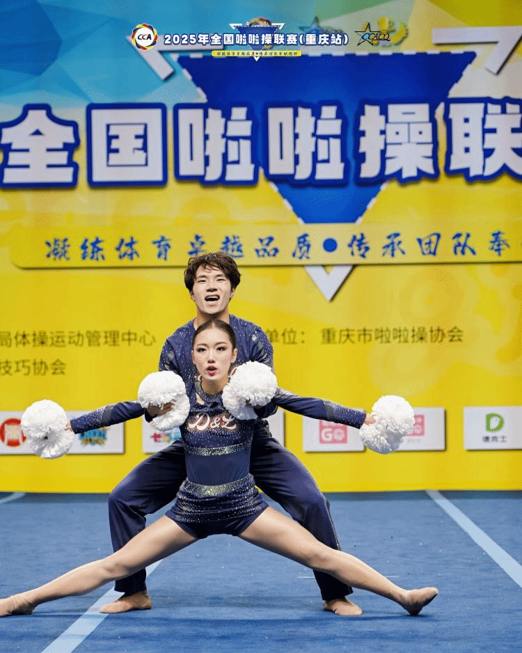 由学院副院长贾勇为领队,教师邓茗丹、向路为教练,18名学子组成的重庆对外经贸学院D&L啦啦操代表队参加了2025年全国啦啦操联赛重庆站的比赛。经过两天紧张的比拼,啦啦操代表队获双人爵士、双人街舞两个项目第二名,集体花球第三名,双人花球第四名。