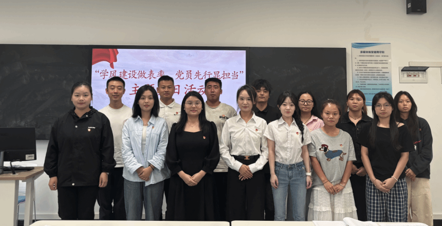 8.9月29日,学生一支部在B7505召开了“学风建设做表率,党员先行显担当”主题党日活动。支部全体党员齐聚一堂,共同探讨党员在学风建设中的责任与路径,会议由支部书记何江梅老师主持,学生党员共计15人参加。本次主题党日活动将党建与学生的核心任务学习进行深度融合,找准了发挥党员作用的有效抓手。
