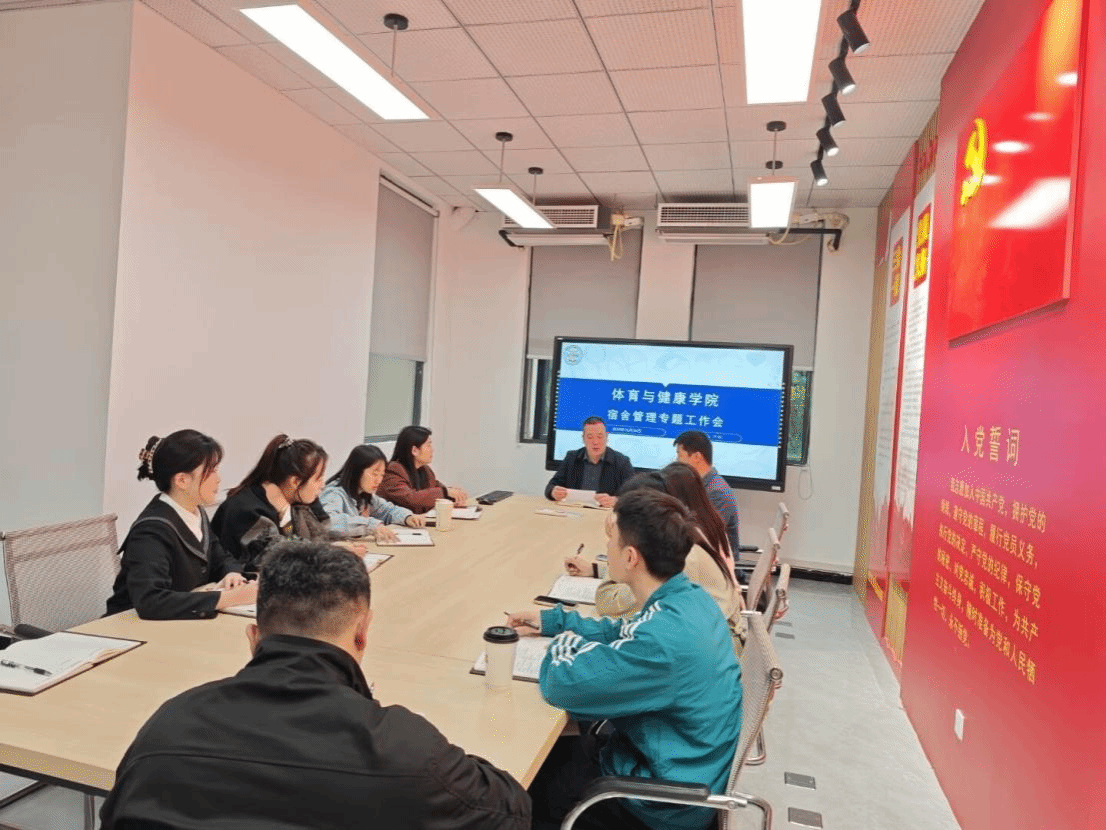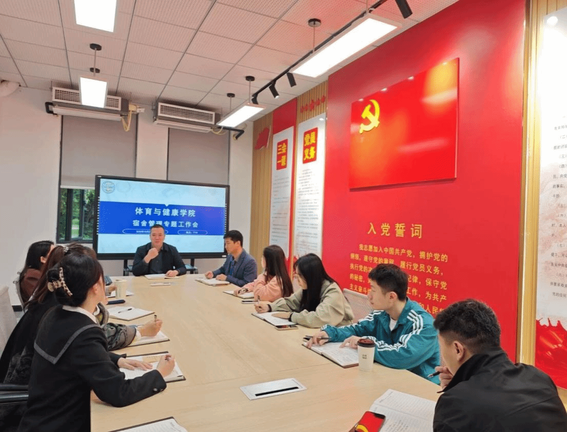 为进一步强化宿舍管理工作,筑牢学生安全防线,充分发挥宿舍育人功能,2025年10月24日,体育与健康学院于7110会议室组织开展宿舍管理专题研讨暨业务学习会。学院党总支书记谢冬、团总支书记刘云超、全体辅导员参会,会议围绕宿舍安全管理、卫生建设等核心议题展开深入交流。
