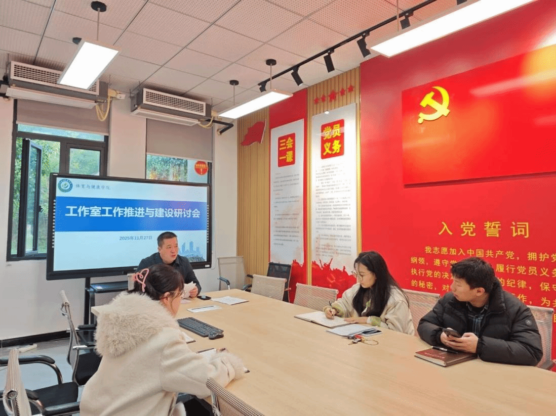 为进一步强化辅导员队伍专业化建设,夯实育人平台根基,推动辅导员工作室精准发力、提质增效,2025年11月27日,体育与健康学院党总支书记谢冬主持召开辅导员工作室推进与建设专题研讨暨业务学习会。学院全体辅导员参会,围绕学院三个辅导员工作室的建设定位、推进路径、特色打造等核心议题展开深入交流探讨。