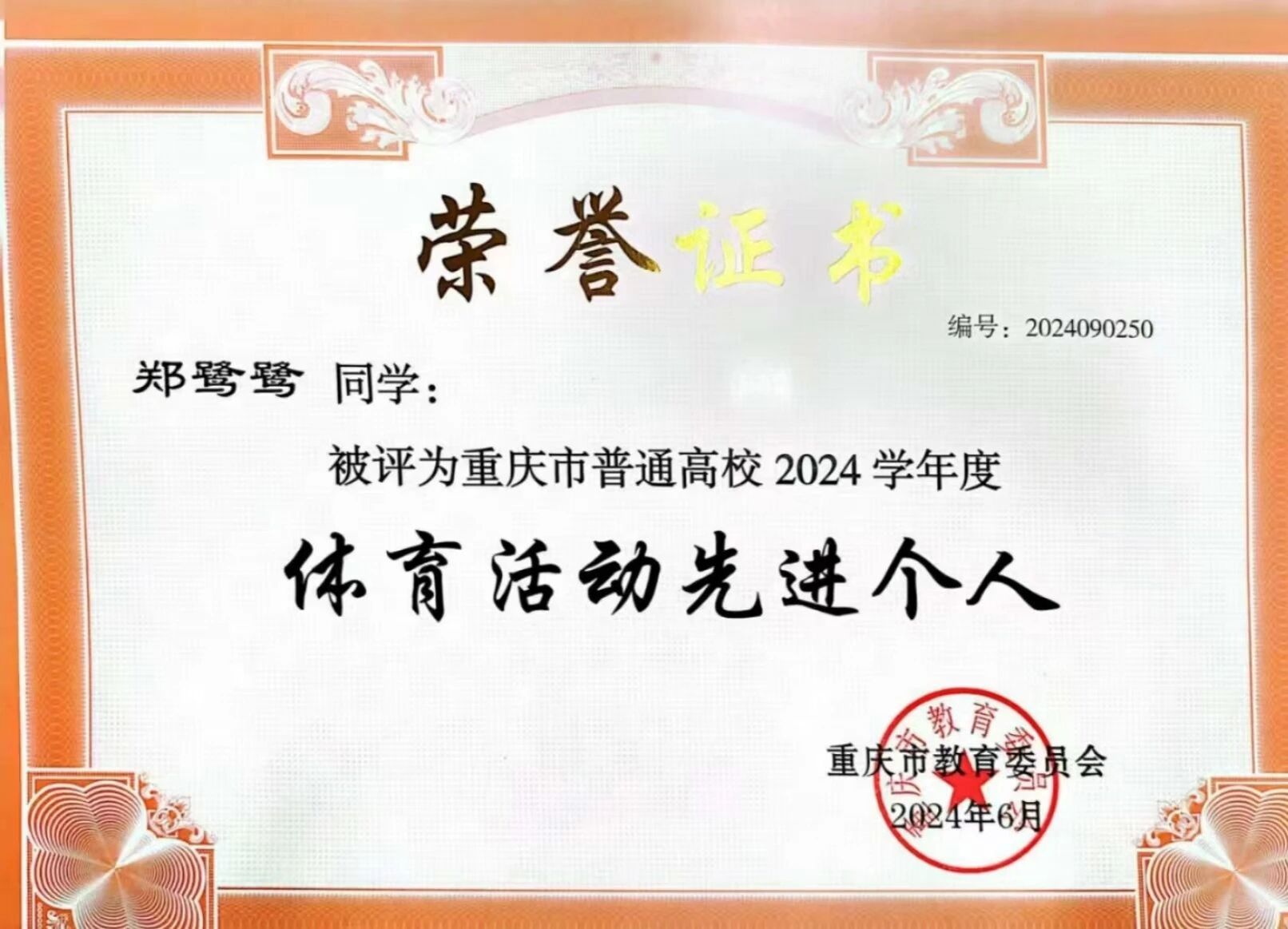 “自古圣贤之言学也,咸以躬行实践为先,识见言论次之。”郑鹭鹭一直将这句古训铭记于心,积极投身于志愿服务活动,用实际行动诠释着志愿精神的真谛,用“志愿红”擦亮奋斗的青春底色。截至目前,她累计志愿者服务工时已超过100小时。从第一次参加志愿者服务活动的紧张、激动,到接连参与了2024年爱智s6运动季软式棒垒球比赛、2024年全国高尔夫球锦标赛、2023重庆市合川区全民健身社区运动会等诸多赛事m的服务工作后,无论是作为裁判员还是工作人员,当以“服务”的心情踏入不同的赛场,她都能感受到与竞技者身份不同的荣耀与自我认同。她始终坚信,社会的和谐美好系于无数平凡人的坚守与奉献,志愿者活动让人眼界更加开阔,心灵更加清纯透彻,对奉献过程中得到的欢乐感受也更加深刻。